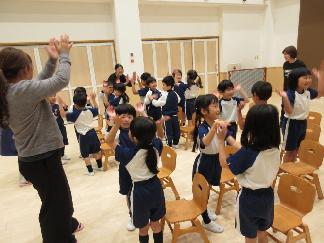 まずはしあわせなら手を叩こう✋をみんなで歌い曲に合わせて友だちと手を叩いたり