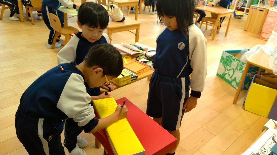 グロッケンの台を探していたお友だちが「いい箱見つけたよ!」と