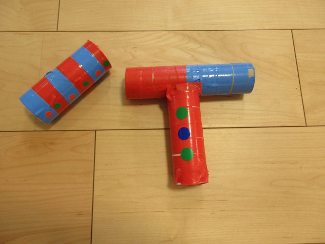 ウッドブロックはトイレットペーパーの芯を繋ぎ合わせ、
