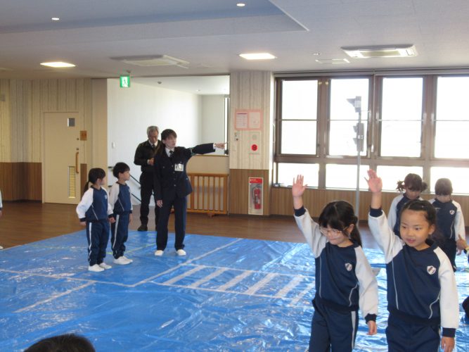 2026年2月4日 お知らせ今日は四日市市役所の交通安全係「とみまつ隊」の指導員さんに来ていただき、交通安全について学びました。9月に来てもらって学んだ『と・み・まつ』の約束をけんちゃんともう一度みんなで確認したあと、信号や横断歩道の渡り方や道の歩き方を指導していただきました。