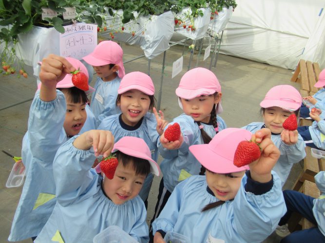 いちごでお腹いっぱいかもしれない・・・と心配していた子もペロリと完食していました!大好きなお家の方に作ってもらったお弁当は、「宇宙一おいしかった~」とみんな言っていました🍱