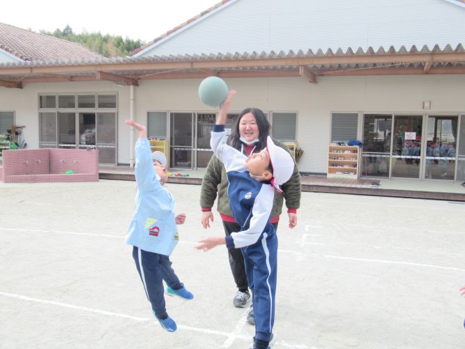 ボールに当たらないように一生懸命逃げたり、ボールを追いかけたりととても白熱した戦いになりました。練習を始めた頃は、ボールに当たって泣いたりどっちが投げるかで喧嘩したりしていましたが、今日はボールが当たっても泣くことなく外野へ移動し、ボールもスムーズにパスする姿にとても成長を感じました