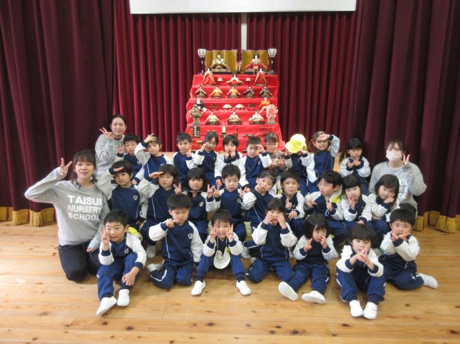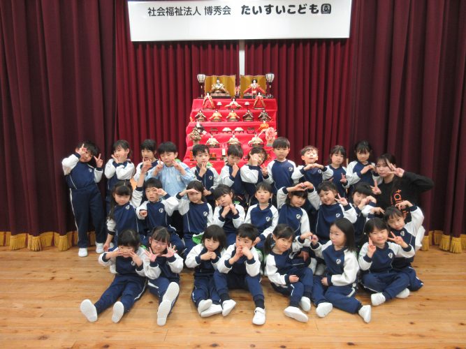 2026年3月2日 お知らせ今日はひな祭り会を行いました。3月3日は桃の節句の事で、女の子のお祝いをする日。女の子の健やかな成長や幸せを祈って、たいすいこども園のみんなでお祝いをしました。