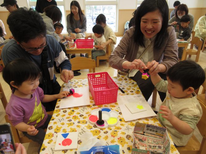 綺麗に押せた時の嬉しそうな表情😊や色が混ざった時の「うぉー!」と発見した笑顔などたくさんの姿が見られました。