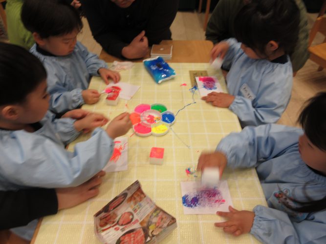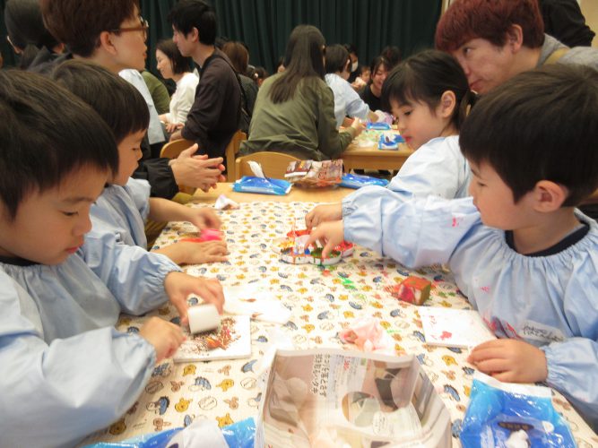 朝の会が終わったら、とっても楽しみにしていたコースター制作!お家の人と制作することができて、いつも以上に楽しんで取り組む姿が見られました。