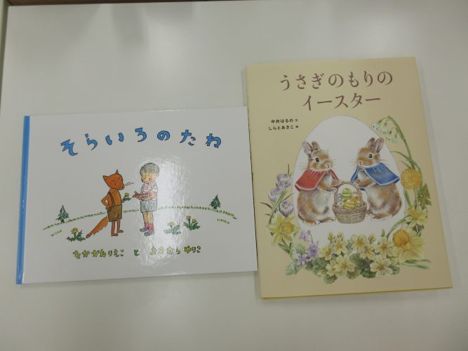2026年4月16日 お知らせ今年度最初のお話は、らいおん組🦁「うさぎのもりのイースター🐰」ぱんだ組🐼「そらいろのたね🌱」でした📚