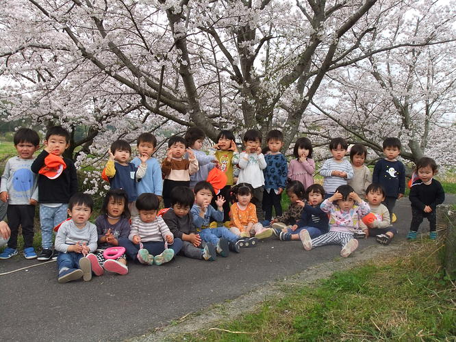 【たいすいこども園】🌸お花見🌸② 2024年4月10日 お知らせ 桜の花が満開になり、各クラスで園の桜や近くの桜並木にお花見に行きましたよ こあら組🌸園舎前で桜を発見! 🌸うさぎ組と桜🌸 りす組バギーに乗って桜散策🌸