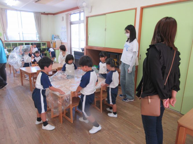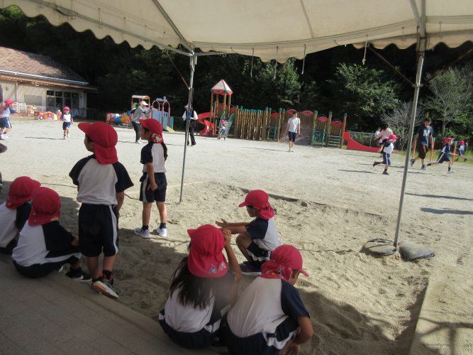 お友だちのおうちの方とも遊べて、いつもとは違う楽しい時間となったようです♪台風の影響もなさそうなので、明日も予定通り実施できそうですので参観の保護者の方はよろしくお願い致します。