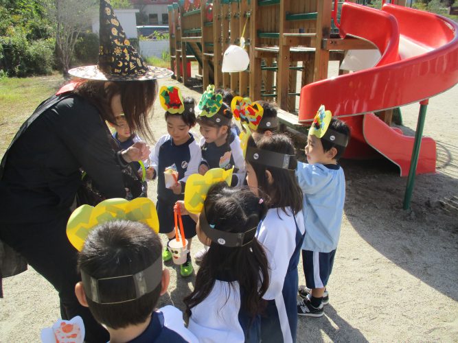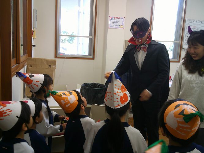 トリックオアトリートミッションでは、ドラキュラや魔女に“トリックオアトリート!お菓子をくれなきゃいたずらしちゃうぞ!!”と勇気を出して言うこどもたち。お菓子と最後にはシールをゲットして楽しい時間になりました🎵