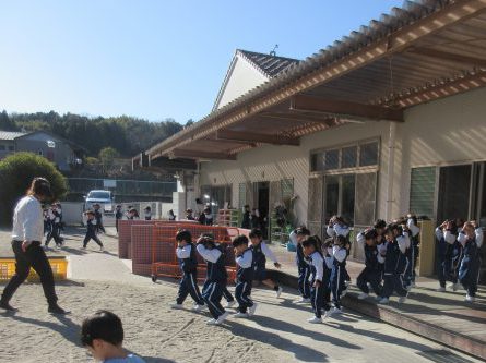 「火事です!避難するよ!」と聞くとすぐに先生の後に並び素早く非難していました。