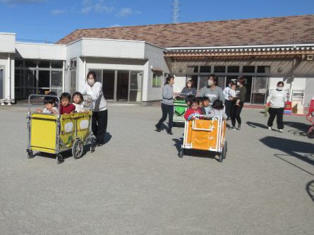 ひよこ・りすの子どもたちは先生の誘導で不安にならず、安全に避難ができました。