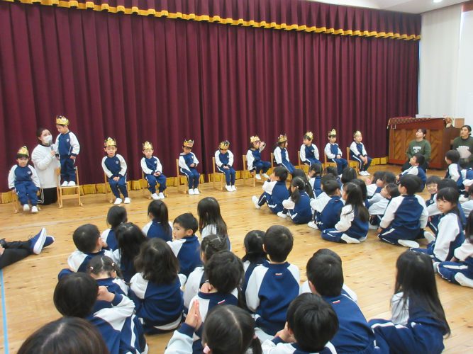 2026年2月17日 お知らせ今日は2月生まれのお友だちのお誕生日会がありました!みんなの前に照れながらも嬉しそうに冠を被って座る誕生児さん。それぞれ名前や年齢、好きな物や大きくなったら?小学生になったら??などのインタビューに答えます。「プリンセスになりたい!」といった可愛い夢や「雑草検定をうけたい!」など個性的な夢など一人ひとり、自分の思いを表現してくれました😊