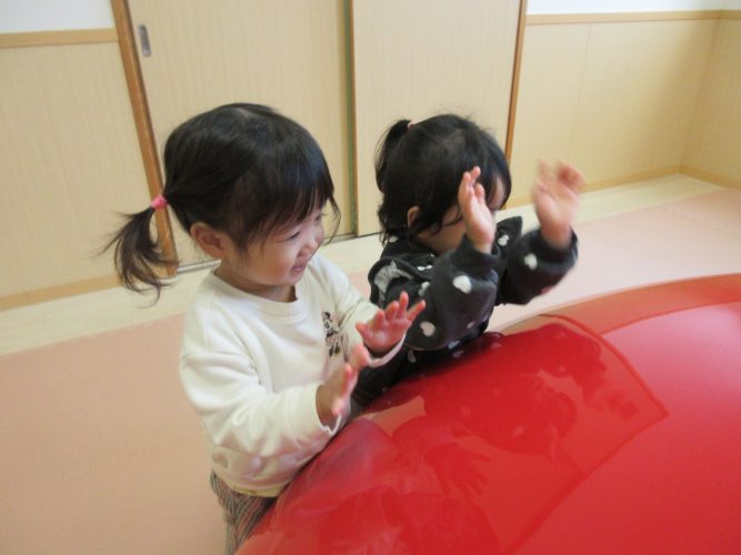赤い滑り台では、ドンドンとリズムに合わせて叩くことを楽しんでいましたよ⭐