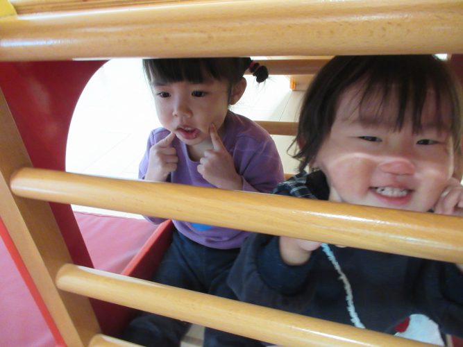 巧技台の下のトンネルの中では、お友だちと一緒に運転手ごっこを楽しんだり、