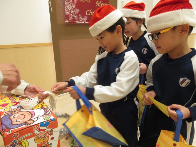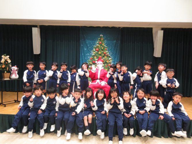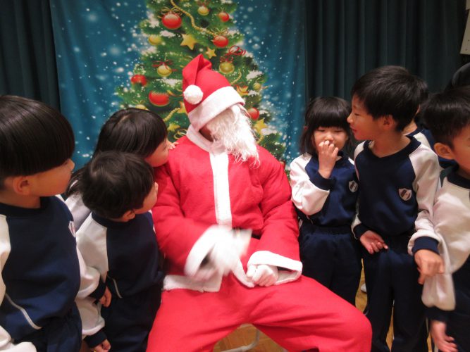 鈴の音が聞こえ、サンタさんが登場すると嬉しそうな子どもたち🎅