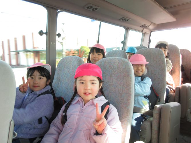 理事長先生のバスに乗って目的地に向かうと、「楽しみすぎて早く起きたんだ~!」「いっぱい食べるぞ~!」とうれしそうな声がたくさん聞こえてきました👂