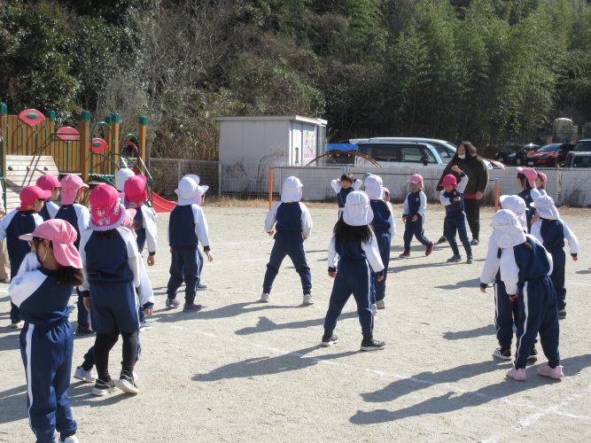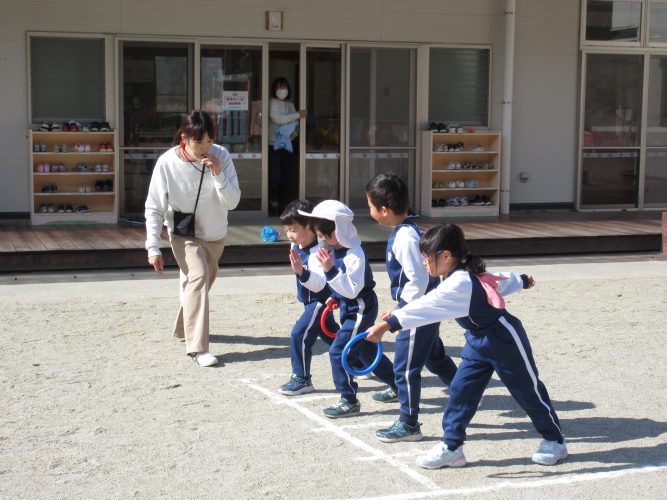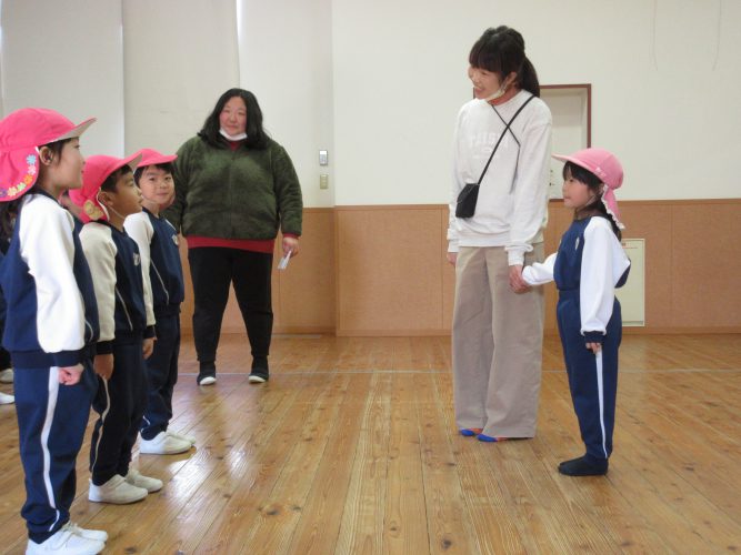 同じ小学校へ行くお友だちと自己紹介をしてから、みんなで園庭でドッジボールとリレーをして遊びました。混合チームで行ったため初めは、緊張した様子でしたが、試合が進むにつれて「投げるのはやっ!」「ボール投げる?」と声を掛け合って楽しみながら試合をする姿が見られました😊リレーでは、みんなで「がんばれー!」「勝てるよ!」といった声も聞こえてきましたよ!