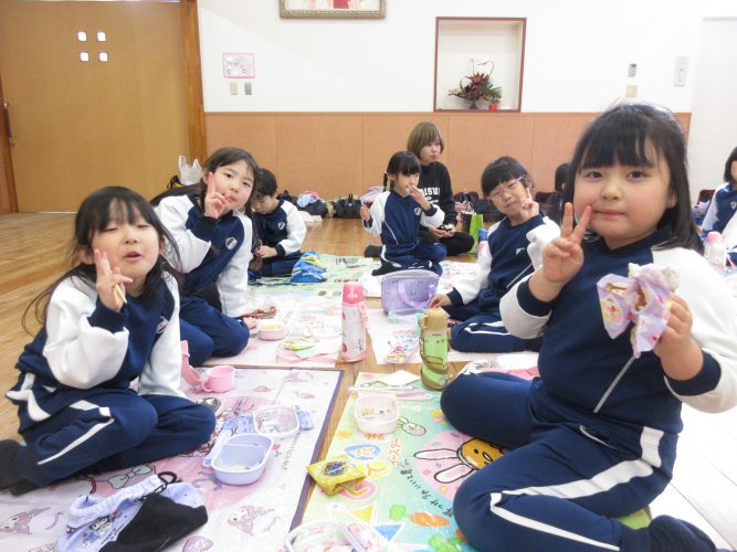 「ママが早起きして作ってくれたんだ~」「このおにぎり美味しいんだよ!」とうれしそうに話しながらお弁当の時間を楽しみました🍱