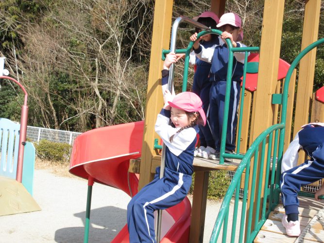 最後に、たいすい中央こども園と違う遊具がたくさんあり、園庭で遊び、大満喫ならいおん組さんでしたよ♪