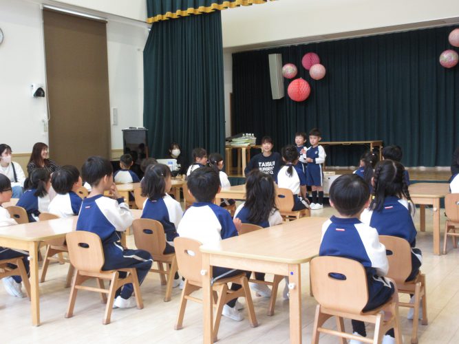 しっかりとお当番さんの話を聞いて、他のお友だちも