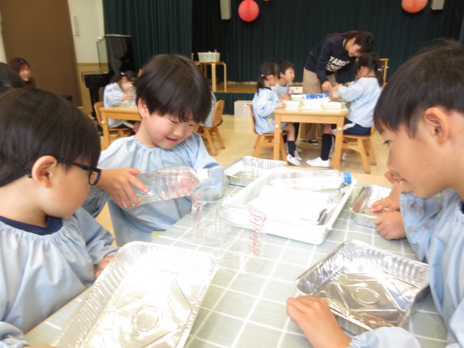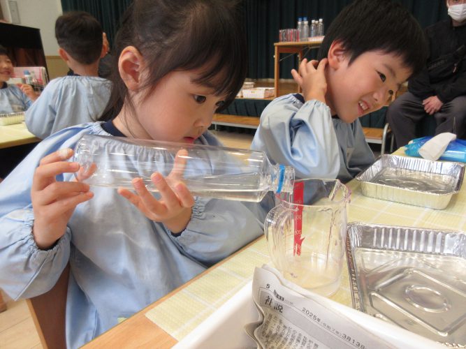 水と、魔法の水を100mlずつ入れて混ぜると、準備は完了です。