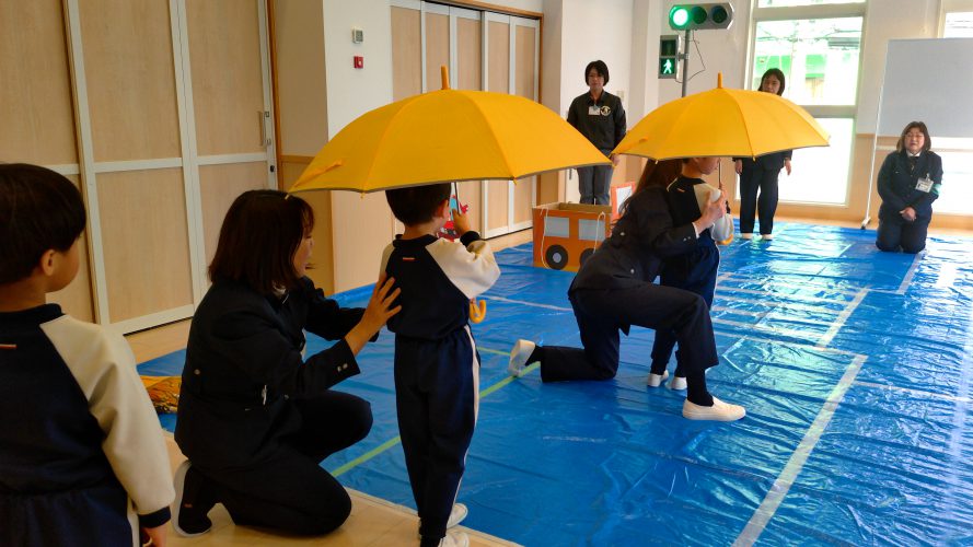 「小学校では傘をさして学校に行く日もあるもんね」と