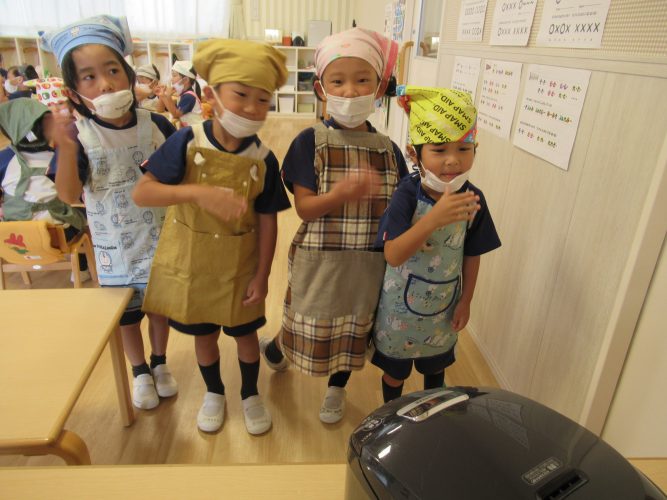 炊き上がりのお米の匂いをみんなで順番に楽しみました🍚