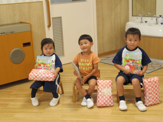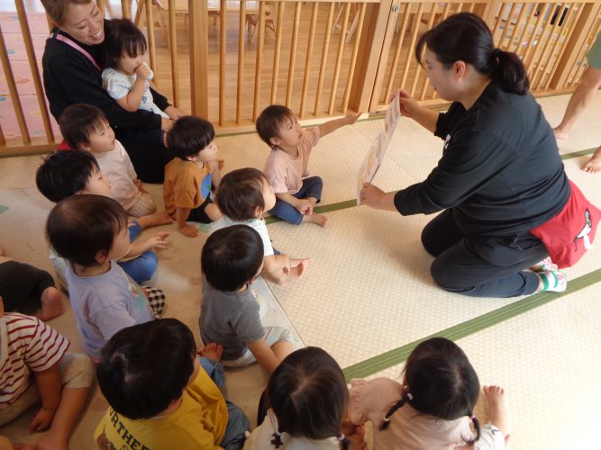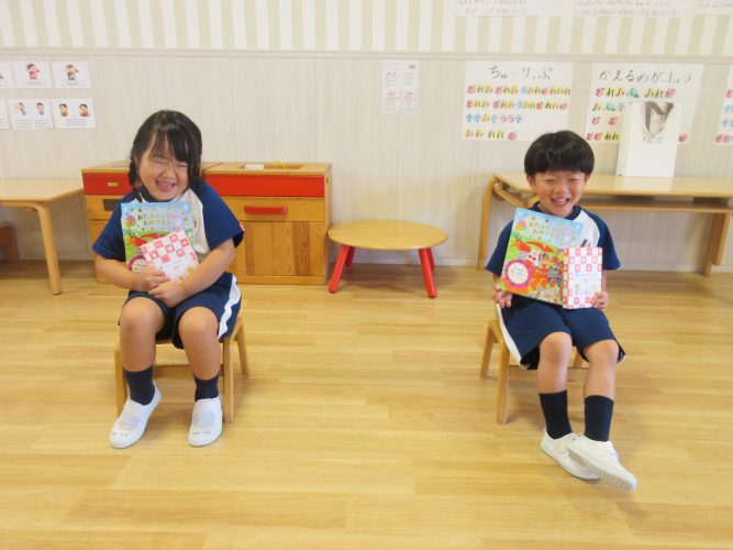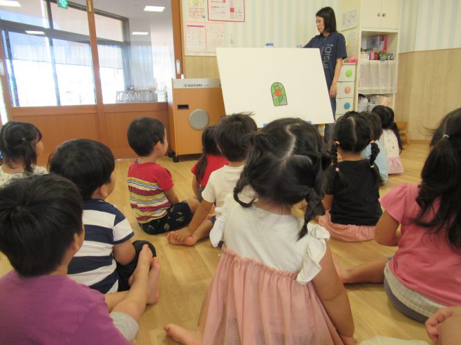 おばけと聞いてお友だちと肩を寄せ合って「こわい~」と言いながらも物語が進んでいくと声を出して楽しんでいましたよ🎵