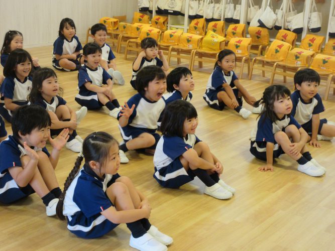 ぱんだ組、らいおん組では誕生日のお友だちのインタビューを聞いてお祝いしてから、マジックショーを見ました。