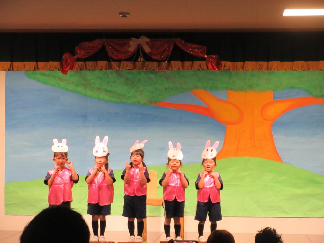 ぱんだ組は「ピアニカ・英語の歌・歌・オペレッタ」を披露しました🎵少し緊張した子もいましたが、練習の成果を発揮して、大好きなお家の方に見ていただくことができましたよ(#^^#)