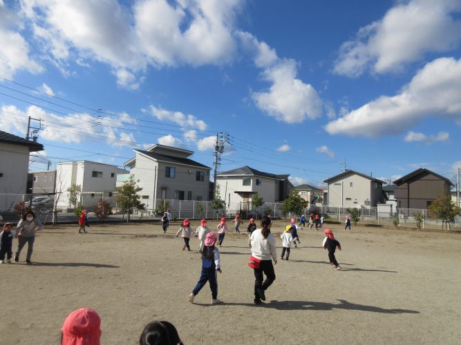 その後はみんなでケイドロをして遊びました。今回は警察が人気でしたが、泥棒の子もみんなで助け合いながら一生懸命逃げていました✿