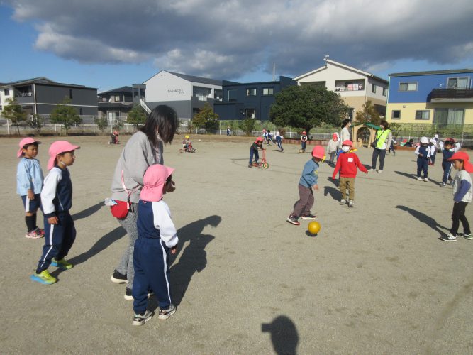 外で遊ぶことが好きな子が多くドッジボール、ブランコ、おにごっこなどの声がよく出ていました。初めて会うお友だちを前に、少しドキドキする様子もありましたが無事紹介できていました🎵