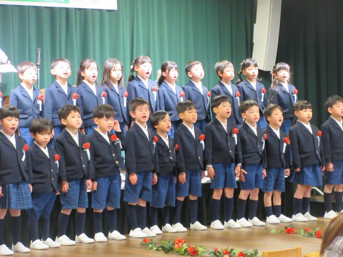 お別れの言葉を言った後は、「ずっとわすれない」という卒園ソングを歌いました。とても素敵な歌声で、子どもたちとの思い出がよみがえり胸にグッとくるものがありました。